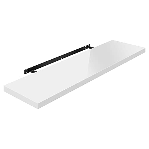 WOLTU Volato Vägghylla, svävande hylla, träbräda med högblank vit yta, CD-/DVD-hylla, bokhylla, 120 x 22,9 x 3,8 cm, RG9484ws