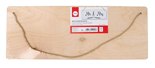 Rayher Träskylt rektangel, FSC 100%, 40 x 15 cm, tjocklek 6 mm, med jutehängare, björkträ, träskylt för upphängning, träbräda, dörrskylt, trähängare blanko, 62849505, natur