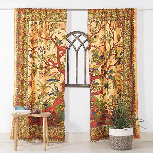 Populära hantverk indisk hippie bohemisk vackert livets träd batik mandala gardin paneler grön