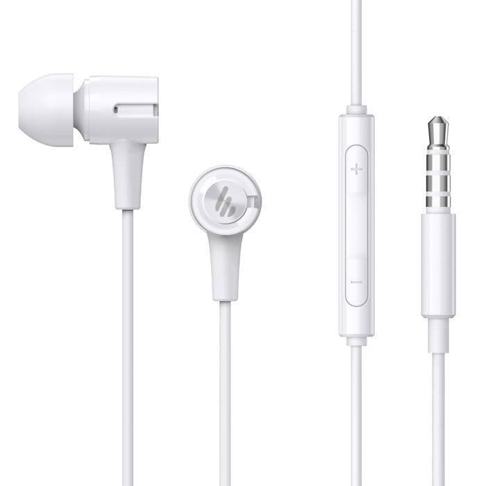 Edifier P205 in-ear hörlurar med mikrofon och in-line kontroll, 3,5 mm stereo hörlurar med tråd - vit