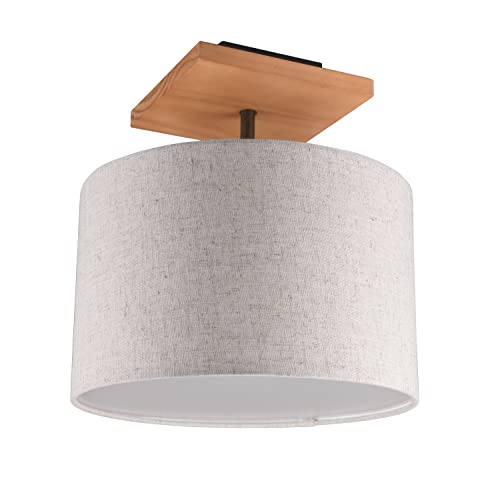Trio Leuchten taklampa Elmau 602100130, metall nickel antik/trädekor, tygskärm, vit, exkl. 1 x E27