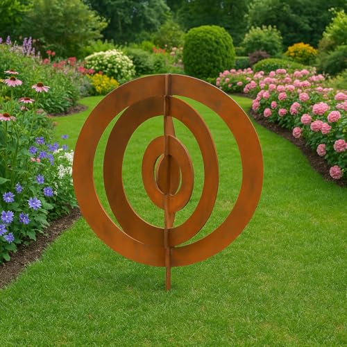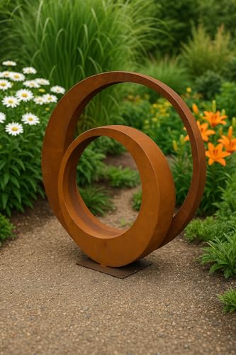 Zen Man ädelrost trädgårdsplugg rost trädgårdsskulptur av metall trädgård figur lyckosymbol trädgårdsdekoration D 60 cm H 80 cm 031146
