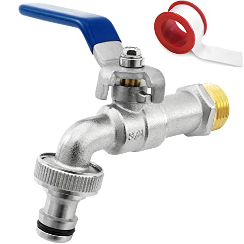 SHYNE Premium 3/4 '' Tum Kran av Mässing | Rost- och Frostbeständig + 1x Slanganslutning + E-Bok | för Trädgård, Tvättmaskin, Regnfat
