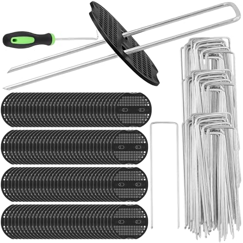 YIXNSW 200 stycken markankare och buffertskiva, anti-rost fästankare jordnagel avståndskrok, U-formade nagelstift, trädgårdssängar för konstgräs, utomhustält, stabil camping, trädgård