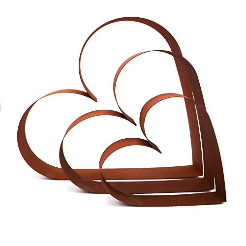 UNUS Trädgård rost dekorativa hjärtan set om 3, rabattinfattning, trädgårdsdekoration, ädelrost, metall rostoptik