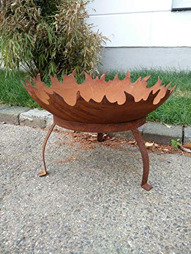 Zen Man patina eldskål trädgård, trädgårdsskål med stativ, växtskål rost metall, trädgårdsdekoration 50 cm 1,8 mm D = 12,5 cm handgjord