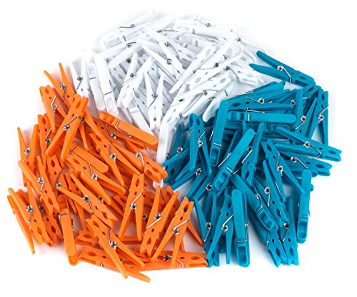 Beldray LA033376TQ klädnypor – 100-pack inomhus/utomhus tvättklämmor för tvättlina, trädgård, luftare, stark återvunnen plast ultrasäker grepppinne, rost- och fuktbeständig, blandade färger