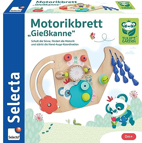 Selecta 61075 Tulips trädgård, motorikbräda vattenkanna, 25 cm, motorikleksak av trä, färgglada