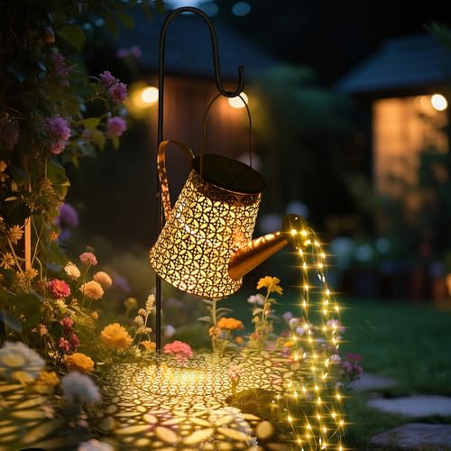 LOVERUIS vattenkanna sollampor utomhus, trädgård, LED solljusslinga vattentät retro metall vatten kan hänga lykta med konsol varm vit trädgårdsdekor för uteplats, gård, gångväg gåvor