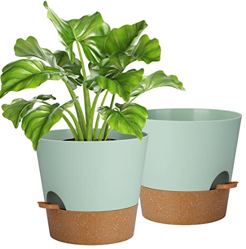 Blomkruka, 25,4 cm växtkruka 2-pack, plastblomkruka med bevattningssystem, modern för inomhus- och balkong trädgård växter suckulent kaktus (grön)