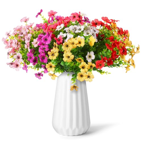 HBell 12 paket utomhus konstgjorda blommor UV-beständiga falska buxbom-växter, falskt plastgrönska för inomhus utomhus hängande växter trädgård veranda fönsterlåda hem bröllop dekor (multi)