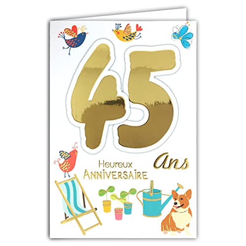 69–2033 födelsedagskort 45 år män kvinnor – trädgård växter vattenkanna återhämtning hund fåglar