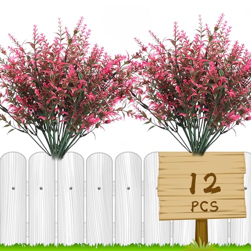 HBell 12 paket utomhus konstgjorda blommor UV-beständiga falska buxbom-växter, falskt plastgrönska för inomhus utomhus hängande växter trädgård veranda fönsterlåda hem bröllop bondgård dekor (rosa)
