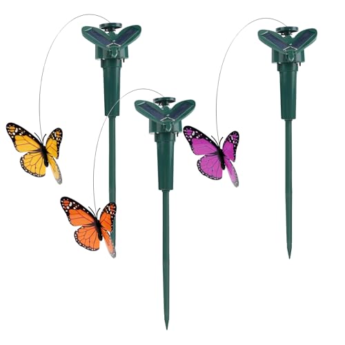 3 stycken sol-/batteridriven flytande fjäril, flytande fjärilsvippa för trädgård, terrass, stolpe, växter, blommor, terrass, landskap, utomhusdekorationer, dekorationer