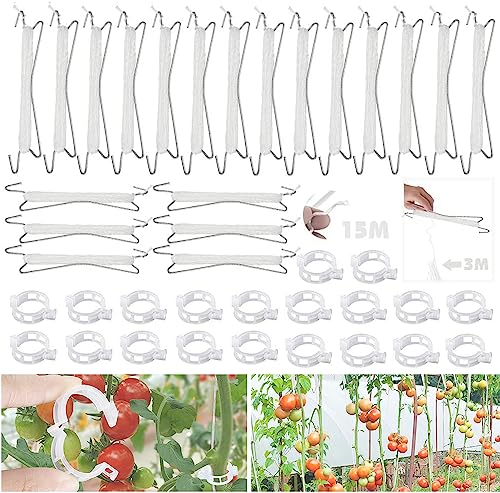 YeahBoom Tomatkrokar metall, 40 stycken tomatkrokar med 80 växtspänne och 10 m rep, robust tomatkrok, tomatstöttkrok växter, trädgård tomatkrokar, dubbla tomatkrokar för hängande tomater