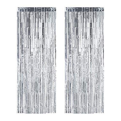 Relaxdays Partygardiner set om 2, festdekoration för födelsedag och bröllop, metallic, trådgardin glitter, 100 x 250 cm, silver
