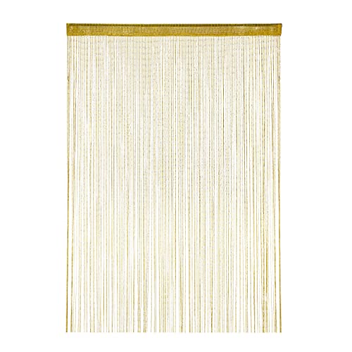 Relaxdays Glittergardin med tråd, 145 x 245 cm, kan förkortas, tunnelgenomföring, för dörrar och fönster, tvättbar, trådgardin, guld