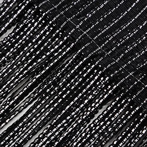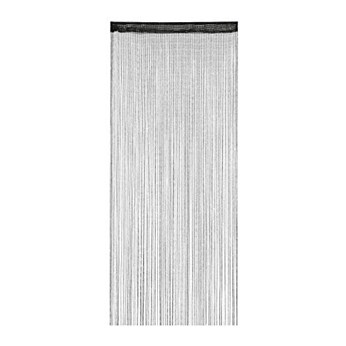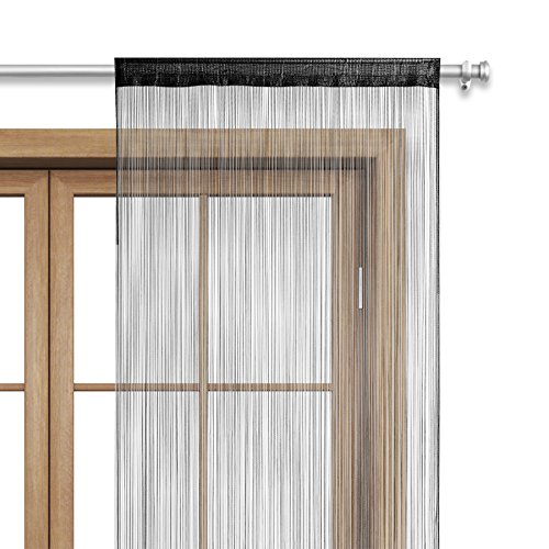 wometo Trådgardin, dörrgardin, trådar, 90 x 245 cm, svart – kan förkortas, tvättbar, enfärgad, i många färgglada färger