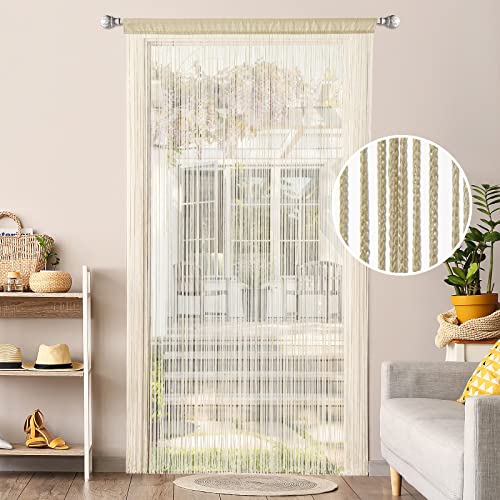 ElevaPulse Trådgardin, pärlgardin, dörrgardin, pärlgardin, makramégardin, dekorativ gardin, gardingardin, balkongdörr, dörrgardin, fluggardin (100 x 200 cm champagnefärg)