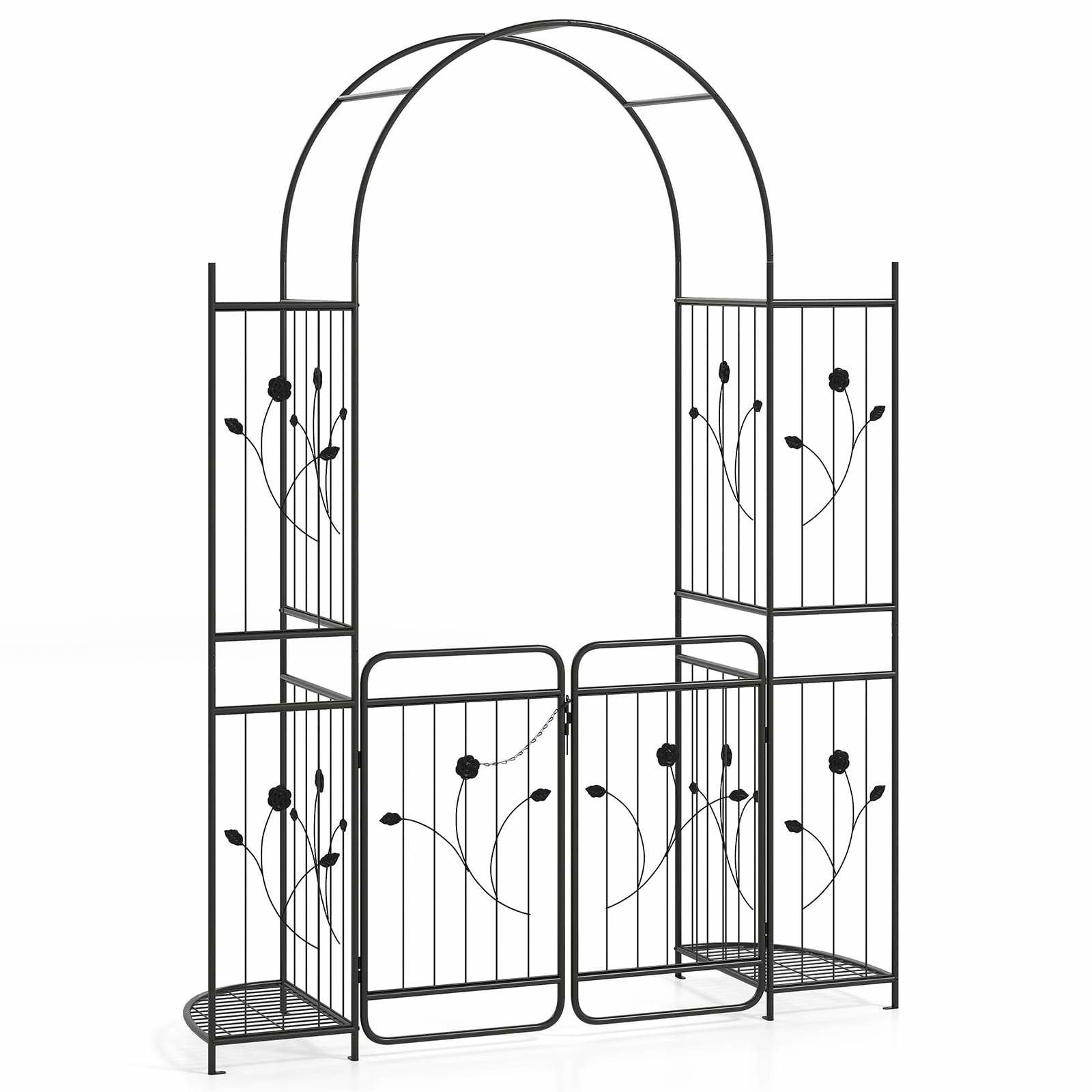 Trädgårdsbåge i metall med grind och hyllor – svart, 220 cm