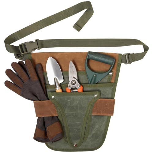 Packool Vaxad duk trädgårdsverktygsbälte, trädgårdsbälte med justerbar midja, vattentät trädgårdsverktygsväska, multi-ficka trädgårdsverktyg organisatör, bärbar midjeverktygspåse för kvinnor och män