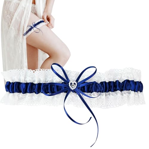 luckaide strumpeband blå bröllop, brudgåva, trädgårdsbälte, strumpband, damstrumpband vit spets garter strumpband för bröllop, Blå, vit, En Storlek