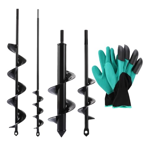 APACALI 4 stycken trädgårdsborr, jordborr för borrmaskin, växtborr sladdlös, skruvdragare, trädgårdsniglar spiralborr sladdlös, tung last, blomma, planteringskärl, snäcka hål, grävning, svart