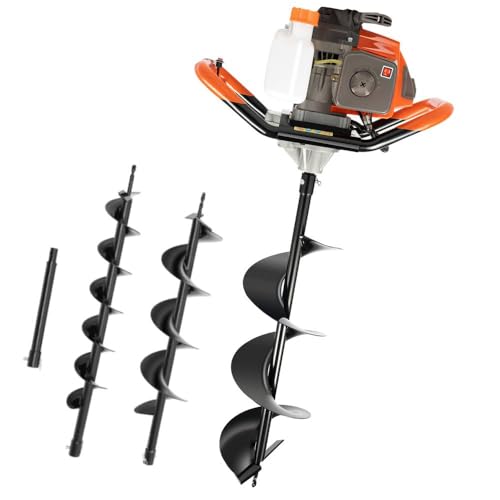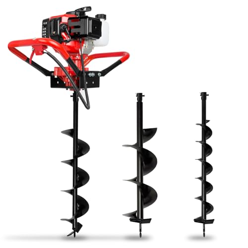 NIGORIY Jordhålsborr, 2-takts bensin jordborr 2 300 W, handhållen trädgårdsborr 3 borrfästen 10/15/20 cm för staketstolpar, jordhålsborr