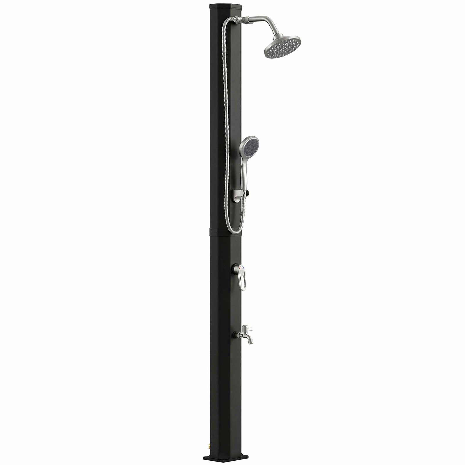 Arebos soldusch | 35 liter | 216 cm | med integrerad termometer | runt duschhuvud | med fotdusch | Trädgårdsdusch med trädgårdsslanganslutning | snap-in-teknik | inkl monteringsmaterial | Svart