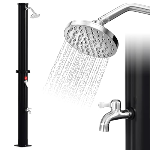 Vigevee Soldusch 35 l solar trädgårdsdusch varmt vatten upp till 60 °C utan strömanslutning pooldusch camping med fotdusch och svängbart regnduschhuvud, inklusive monteringsmaterial, svart