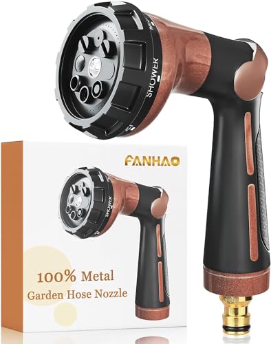 FANHAO trädgårdsdusch, 100% kraftig metallhanddusch trädgårdssprutpistoler, 8 bevattningsmönster, justerbart vattenflöde för trädgårdsbevattning, biltvätt, husdjursdusch