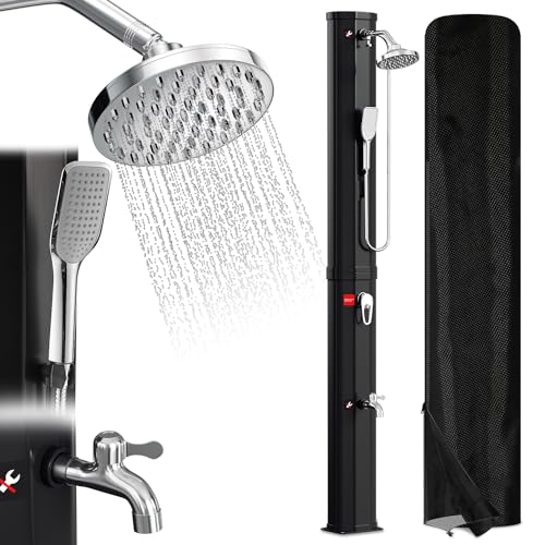 Ansobea Soldusch, 40 liter, soluppvärmd trädgårdsdusch, inkl. skyddskåpa och handdusch, med 180° svängbart duschhuvud, integrerad fotdusch, max. 60 °C, sommardusch för en uppfriskande duschupplevelse