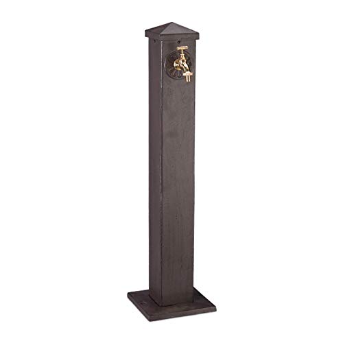 Relaxdays Vattentapppelare, fyrkantig, antik design, med kran, 3/4 tums anslutning, trädgårdsfontän, 91 cm, brun, 91 x 22,5 x 22,5 cm