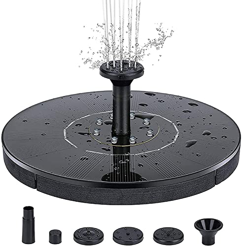 LZQ Solfontän 7 V/1,4 W, rund trädgårdsfontän, minisolfontän för utomhusbruk med 4 munstycken, för trädgård, fågelbad, damm och pool (svart typ B)
