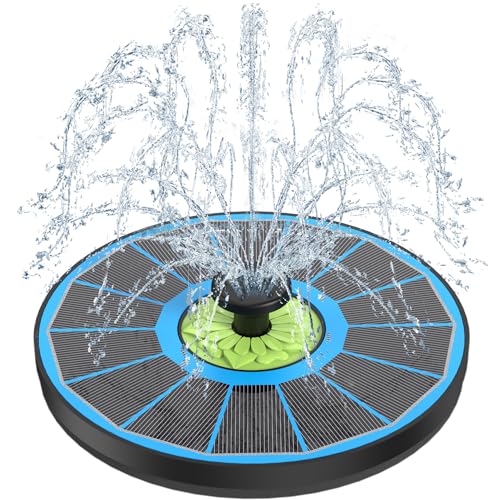 SZMP Solfontän 3,5 W, 2025 ny solvattenpump, utomhus trädgårdsfontän med 7 munstycken och 4 fixeringar för damm, pool, akvarium, fiskkruka och fågelbad (blå)