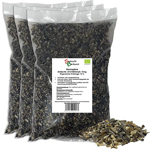 Saatzucht Bardowick Hornspån naturgödsel 30 kg, 100% naturgödsel med 14% kväve för grönsaks- och prydnadsträdgårdar, naturligt kvävegödsel och trädgårdsgödsel med långtidseffekt