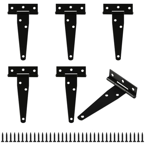 XhjzgcTech 6 Stycken Svarta T-Gångjärn - Metallgrindgångjärn för Dörrar, Laduportar, Skjuldörrar, Ladugnar, Trädgårdsgrindar och Skjulgrindar