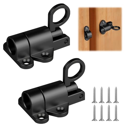 AOOSU 2 st automatiskt fjäderlås – tryckbult skjutdörrlås med skruvar, flerscenlås för fönster, skåpdörrar, trädgårdsgrindar, djurburar (svart)