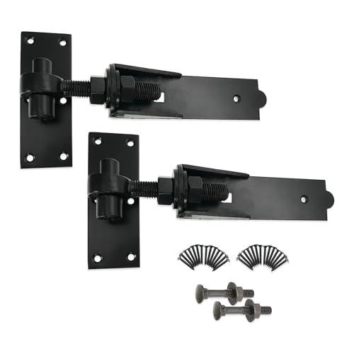 Justerbara krok- och bandgångjärn för fält eller trädgårdsgrindar 20 cm/10 tum/12 tum/18 tum/24 tum svart/zink levereras parvis med alla fästen (10 tum, svart)