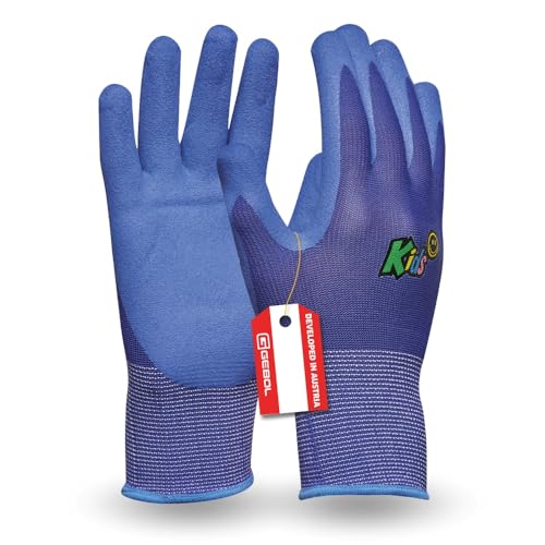 Gebol Kids Blue | Arbetshandskar för barn från 5-8 år | Trädgårdshandskar med vattenavvisande nitrilbeläggning | Ventilerande barnhandskar i storlek XXS (Gr 5) | blå | 1 par