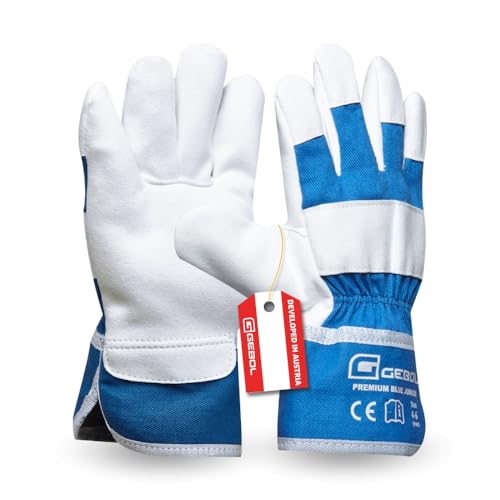 Gebol Premium Blue Junior | Arbetshandskar för barn från 4 – 6 år | Trädgårdshandskar med förstärkt manschett | Ventilerande barnhandskar i storlek 4 (XXXS) | blå | 1 par