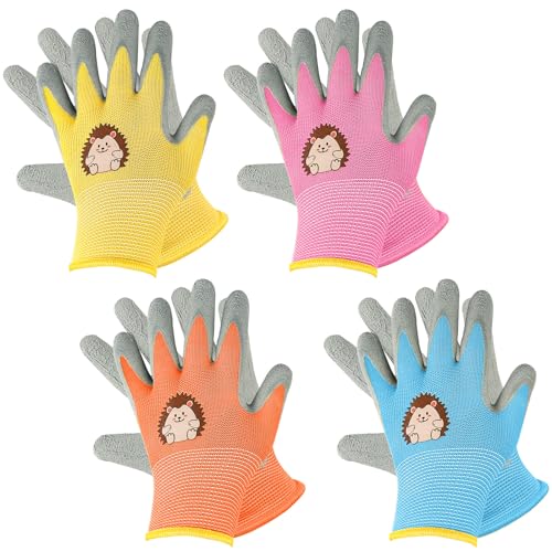 4 par trädgårdshandskar för barn, gummibelagda arbetshandskar, halkfria skyddshandskar, barnhandskar för 3–5 år flickor och pojkar, gör-det-själv, dagligt hushållsarbete, målning