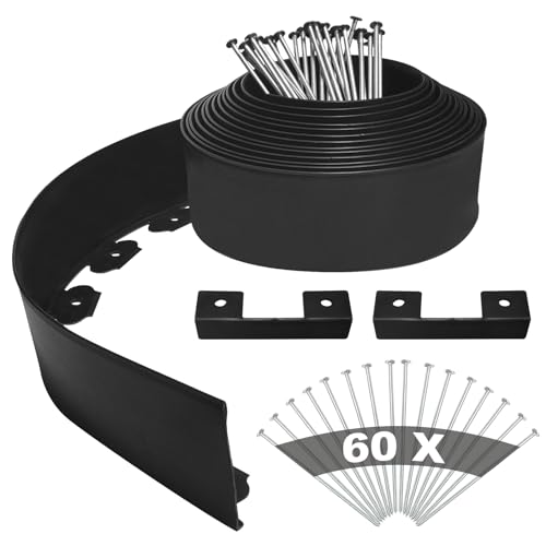 YEEBECA Flexibel trädgårdskant, 10 cm höjd 20 m längd utomhuskant kit med 60 fästpinnar 3 mm tjocklek