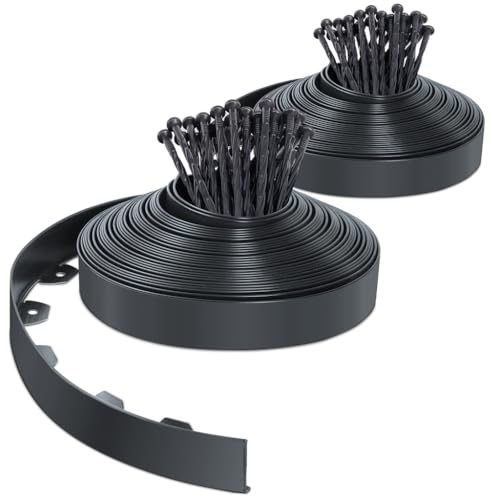 VOUNOT® Trädgårdskant i plast 20 meter med 40 ankare flexibel gräsmattskant gräsmatta med starka pinnar trädgårdsidé höjd 50 mm antracit