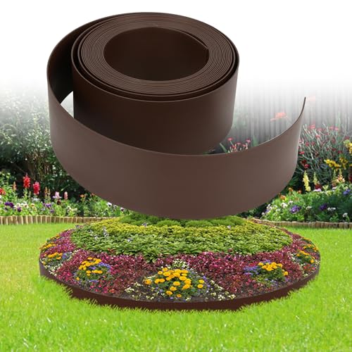 VOUNOT Flexibel trädgårdskant, kant plast rabatter, med 80 fästnaglar, längd 40 m, höjd 5 cm, brun