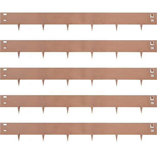 VEVOR Trädgårdskant Galvaniserat Stål 5 st Gräskant med En Rabattkant Metall 7,6x99cm 4,95m Total Längd Avtagbar Dekoration för Gräsmatta Gård Odlad, kastanj, Steel Lawn Edging 3 x 39 in