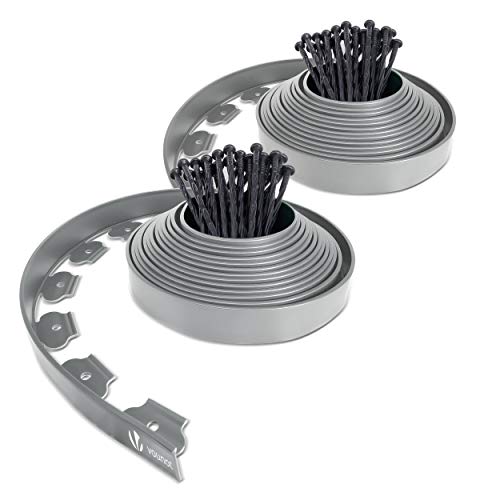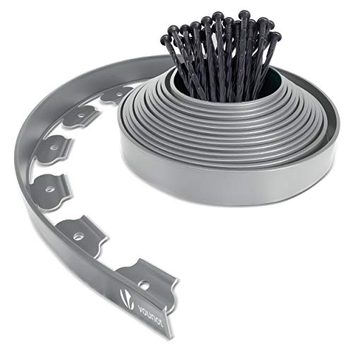 VOUNOT 10 m flexibel gräsmattskant, trädgårdskant i plast med 30 starka säkringspinnar, höjd 5 cm, grå