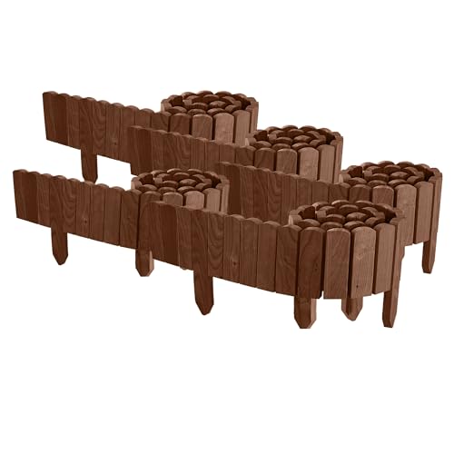 Floranica 10 m Trädgårdskant Flexibelt trästaket 5-delat 2 m x 10 cm Brun Rabattkant Staket av Tallträ Rabattinfattning flexibel Gräskant Rollborder Set för Trädgård