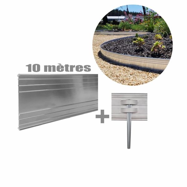 Set med 10 Snigelstaket av galvaniserad stålplåt, 25 cm högt och 10 m långt | Trädgårdskant | Gräskant | Rabattkanter
