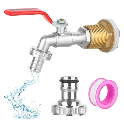 SWAWIS Regnvattentank passage med 3/4 tums dräneringskran med IBC flexibel slangkoppling, kulkran, trädgårdskran för regnvattentank